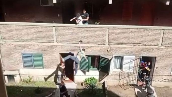 Las imágenes, que circularon en las últimas horas, muestran el momento en que un hombre cae desde la planta alta. Posteriormente, la confrontación continuó en un pasillo del edificio, donde intervino más gente y se utilizó un palo como elemento de agresión. El hecho más impactante ocurrió cuando un individuo levantó a otra persona y la arrojó por encima de la baranda hacia la planta baja.